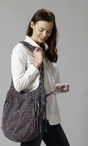The Sugared Fringe Bag is a great functional way to use your crochet skills! This shoulder bag uses a chunky/bulky weight yarn, and would look great in wool, cotton, or acrylic. The fringe is optional, depending on your style preferences!