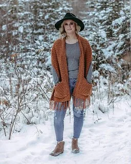 A wonderful wide scarf/shawl with pockets! Fringe is optional. We will practice the techniques on a small swatch and then start the larger piece.