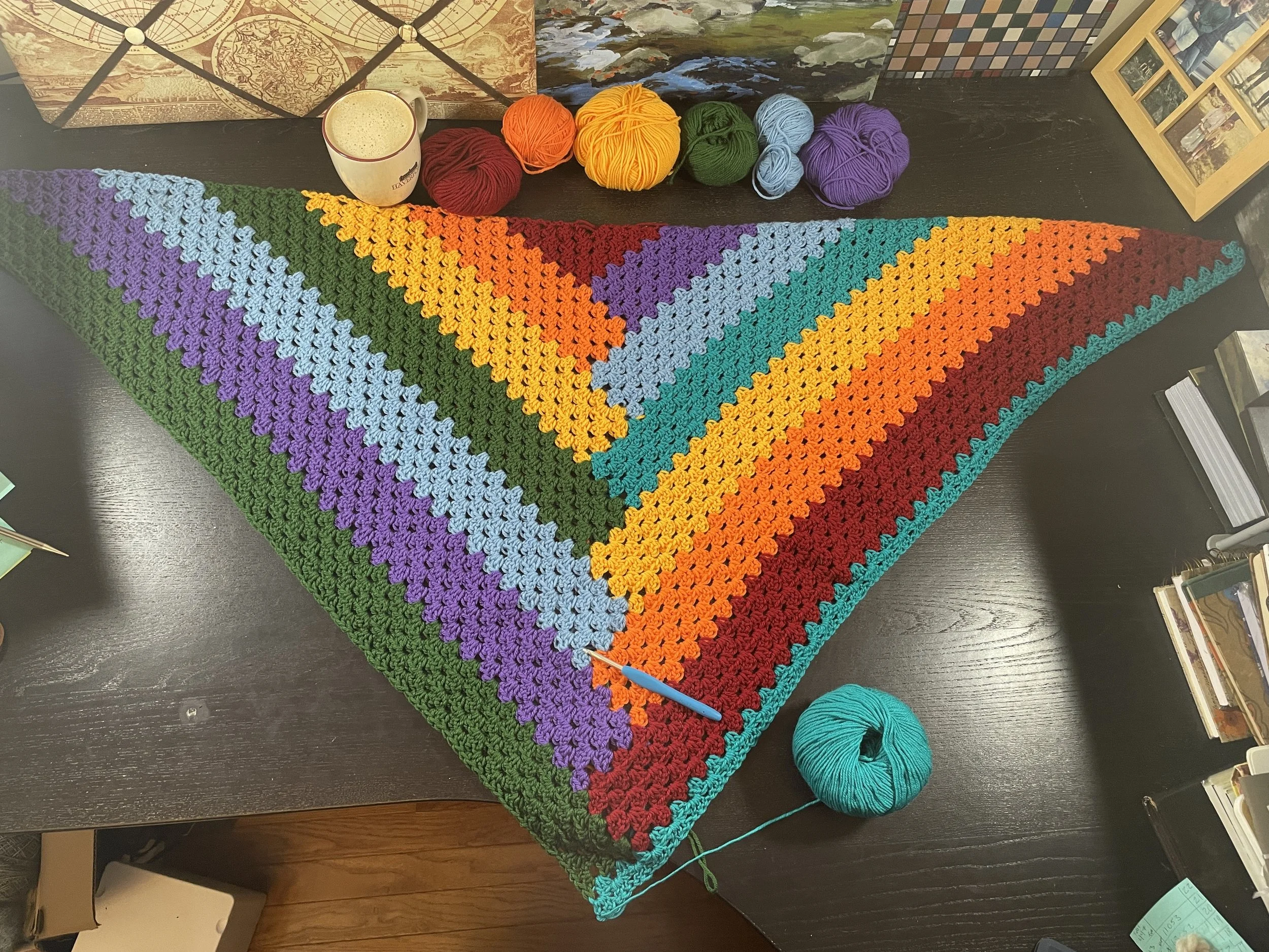 Learn how to construct this simple. intricate-appearing shawl with one class and follow-up assistance included. Knowledge of basic crochet (chain, single crochet, double crochet) a prerequisite (Advanced Beginner level pattern).